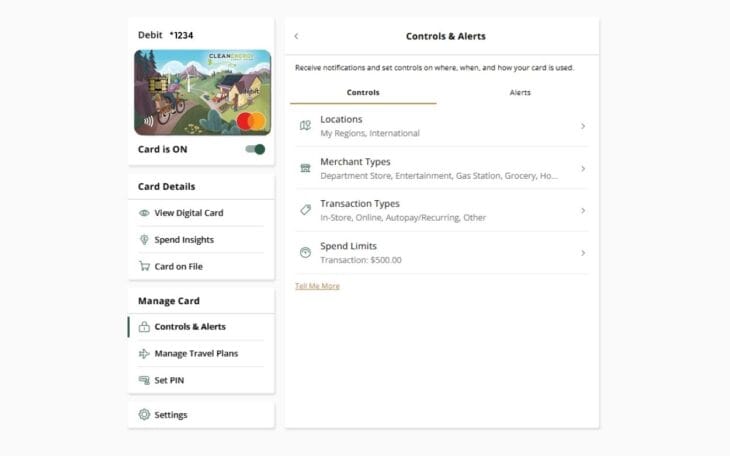 - Set spending limits based on location, dollar amount, merchant type, and transaction type.